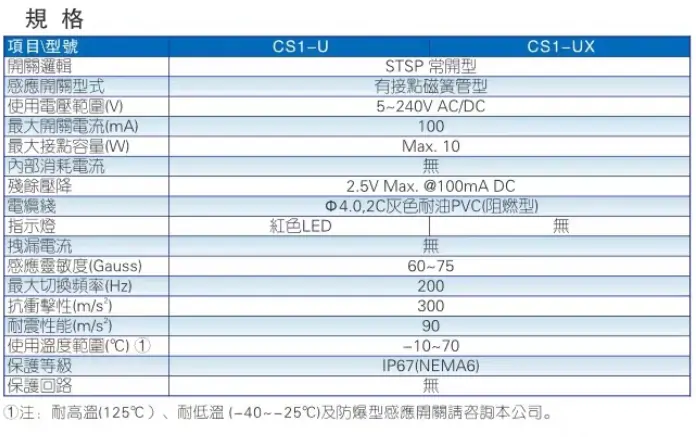 CS1-A CS1-E CS1-F CS1-F (1.5米) CS1-F 020 CS1-F020 CS1-FB(常閉型) CS1-G CS1-G (1.5米)